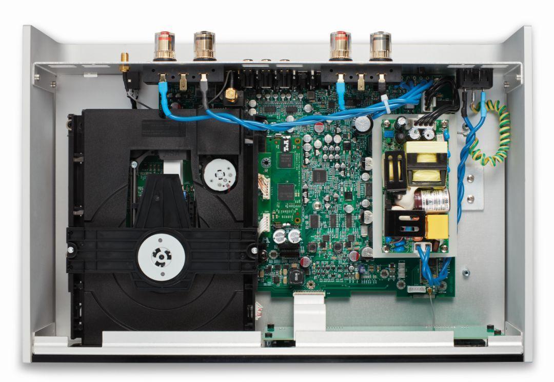 CALA系列中体形较大的一款便是CALA CDR,从整体设计理念和技术配置的角度来看,这款机型非常接近CALA SR,不过CALA CDR仍然具备高品质的CD转盘机构,同时输出功率是CALA SR的两倍,而且还具有高性能的电源供应系统。CALA CDR每声道可以提供连续100W的输出功率,足以驱动较大型的扬声器。为了适应这些新增加的功能和元器件,CALACDR也较大和较重,但是整体仍然保持着小巧的体形,同时也保持了与CALA SR完全一样的整体设计和匀称的外观。因为这两款机型都是基于相同的一块主板,所以它们集成的音乐信号源和连接方式也是一模一样的。