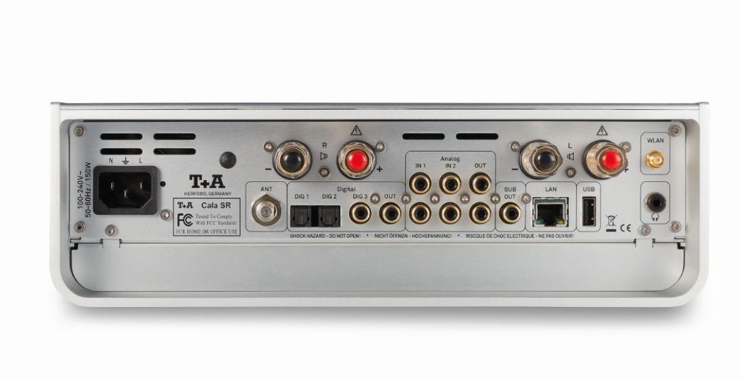 CALA系列可以让用家通过每种可能获得的音乐信号源实现极佳的音质,这些信号源包括:带有Airable Internet Radio服务的互联网广播;三种不同的音乐服务;即插即用;网络音乐服务器和USB储存设备;FM、FM-HD和DAB+广播;CD和通过SP/DIF输入端子从外置信号源器材输入的音乐。移动设备上的内容也可以通过高清蓝牙通道以流媒体的方式实在极佳的音质,甚至也可以还原来自像MM动磁唱头和高输出MC动圈唱头这样模拟信号源的音乐。CALA系列的设计非常独特,并且采用最精良的材料打造。前面板的设计简单而纯粹,没有任何控制旋钮。接收机的每一项功能都是通过操作具有逻辑性且非常直观的FM1000红线线手持遥控器或T+A(听佳音)手机控制App软件进行控制。 CALA SR是T+A(听佳音)外形最为优雅的产品之一。它的设计理念非常纯粹,只采用尽可能优质的原材料生产,并且具备最新的技术。它是一台外形紧凑,相对体形较小的多面手,用传统的“接收机”来称呼它已经不太合适。实际上,它已经成为了一套完整的高保真音响系统中的通过指挥中心。尽管外形尺寸小巧,但它仍然具备有功能齐全的合并式放大电路,并且带有丰富的连接端子,此外强大的功率输出级也能够提供出色的音质。我们的开发者们一直致力于实现在装有合并式放大电路功能的机箱中集成所有重要音乐信号源这一奇迹。CALA SR有意地没有内置CD转盘机构,这是因为当今很多音乐爱好者们已经将CD替换成为了流媒体音乐或音乐服务,同时这种设计理念也可以让机箱保持更为小巧一些的体积。CALASR具备有听者享受音乐所需要的所有东西:我们内部开发的超现代高解析度流媒体客户端,采用了有线、无线和USB界面连接硬盘和NAS服务器;数字调谐器以实现超高品质的DAB+、FM和FM-HD信号接收;高品质的蓝牙接收模块;连接外置信号源器材的数字输入端子;甚至还有模拟输入端子,其中的一组可以连接可相互切换的唱头MM动磁和高输出MC动圈前级放大器。